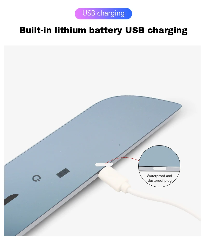 IP67 waterproof. The product is charged via USB cable.